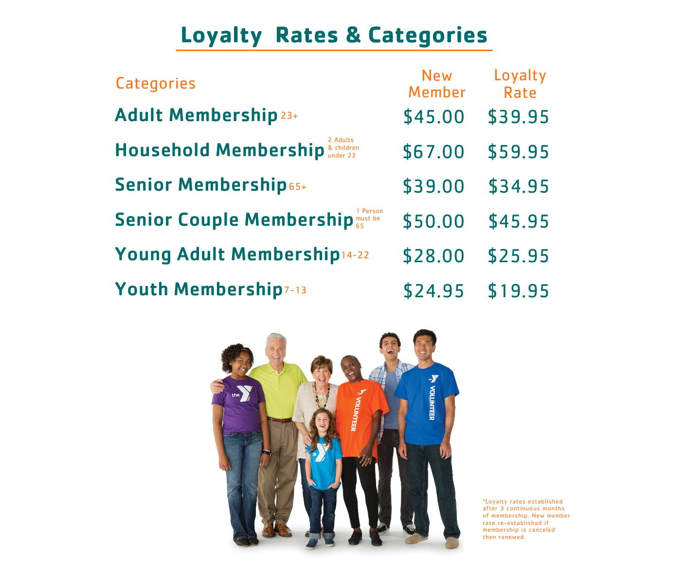 La lealtad es muy importante en YMCA. Queremos reconocer su compromiso no sólo con un estilo de vida saludable, sino también con la Golden Corridor Family YMCA. Todos los miembros adultos reciben 4 pases para invitados al año. A partir del 1 de noviembre de 2020, las tarifas de lealtad de los miembros se hacen efectivas después de 3 meses de membresía continua. Si usted cancela su membresía, el período de tiempo de 3 meses continuos de membresía DEBE ser restablecido para reactivar las Tarifas de Lealtad de la Membresía.